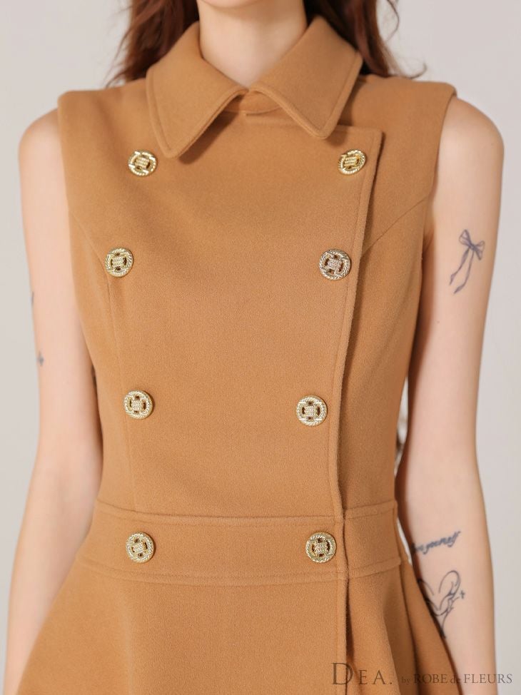 他の画像を見る XSあり!クラシックかわいい♡ 【DEA.by ROBE de FLEURS/ディア】シンプル ノースリーブ ダブルボタン メルトン 襟付き プリーツ フレアミニドレス (DE3365) ¥ 28,380 税込 詳細を見る お気に入りに登録する