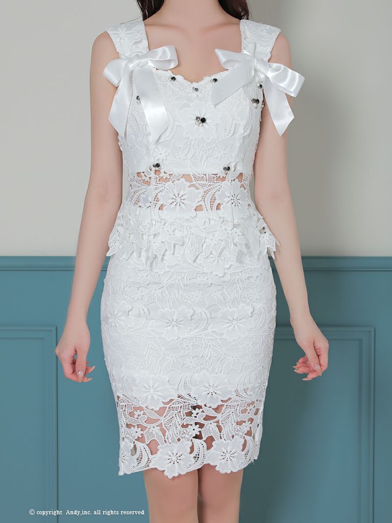 他の画像を見る レースから透ける素肌がセクシー♡ 【Andy/アンディ】ワンカラー 花柄 レース セットアップ リボン ビジュー ノースリーブ 膝丈ドレス(anon2855) ¥ 33,000 税込 詳細を見る お気に入りに登録する