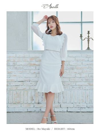 キャバドレス Anella 韓国製 ワンカラー シアー 長袖 ひざ丈ドレス