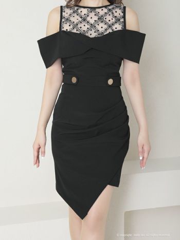 3. 【Andy/アンディ】ギャザー入り ラップスカート セクシー デコルテレース 肩あき タイトミニドレス (AN-OK2792)