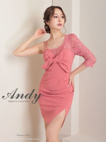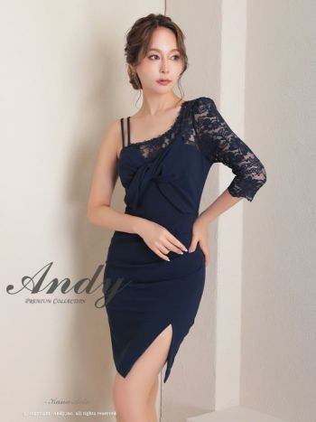 3. 【Andy/アンディ】刺繍レース アシンメトリー フロントリボン スリット タイトミニドレス (AN-ON2763)