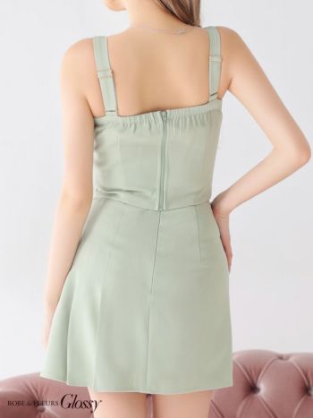 3. 【Glossy by ROBE de FLEURS/グロッシー】ワンカラー ベルトデザイン サイドプリーツ セットアップ フレアミニドレス (GL3151)