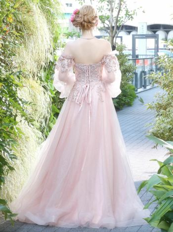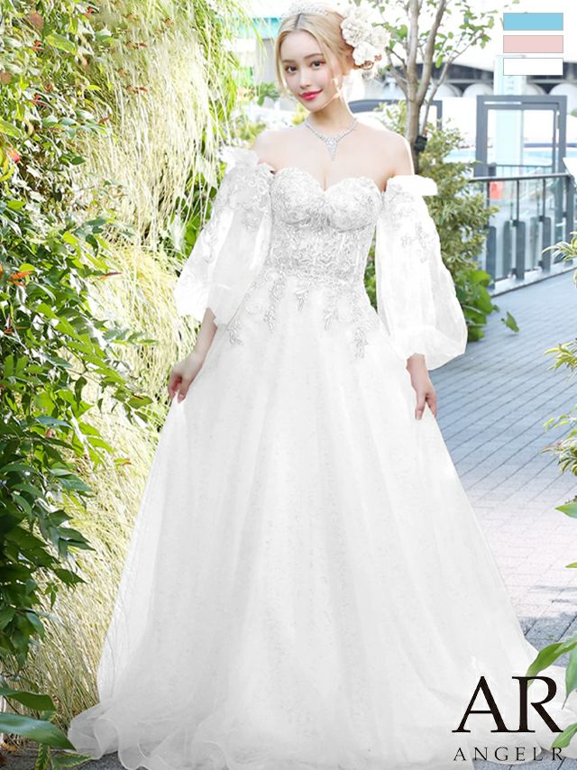 3. 【Angel R/エンジェルアール】長袖 オープンバスト フラワー刺繍 レース バースデー オフショルダー Aラインロングドレス (AR24101)