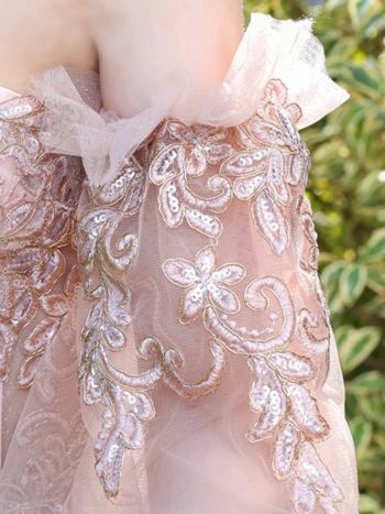 5. 【Angel R/エンジェルアール】長袖 オープンバスト フラワー刺繍 レース バースデー オフショルダー Aラインロングドレス (AR24101)