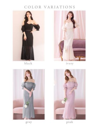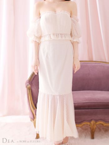 Lあり!スカートのチュール切替えもポイント♡ 【DEA.by ROBE de FLEURS/ディア】ワンピース チェック柄 マーメイド フリル オフショルダー セットアップ ロングタイトドレス(DE3601)