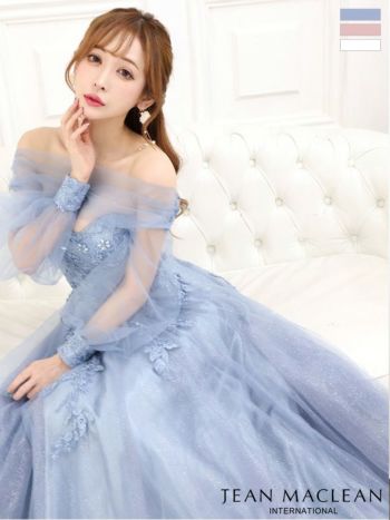 3. 【JEANMACLEAN/ジャンマクレーン】バースデー プリンセス ワンカラー 2wayチュール袖あり立体 フラワー刺繍ネットレース スピンドル オフショルダー オフショルダー ベアトップ フレアロングドレス(31285)