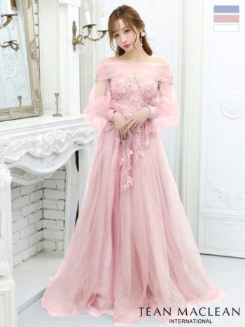 3. 【JEANMACLEAN/ジャンマクレーン】チュール袖あり 立体フラワー刺繍ネットレース スピンドル バースデー プリンセス ワンカラー 2wayオフショルダー オフショルダー ベアトップ フレアロングドレス(31285)