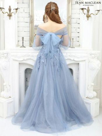 5. 【JEANMACLEAN/ジャンマクレーン】チュール袖あり 立体フラワー刺繍ネットレース スピンドル バースデー プリンセス ワンカラー 2wayオフショルダー オフショルダー ベアトップ フレアロングドレス(31285)