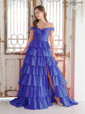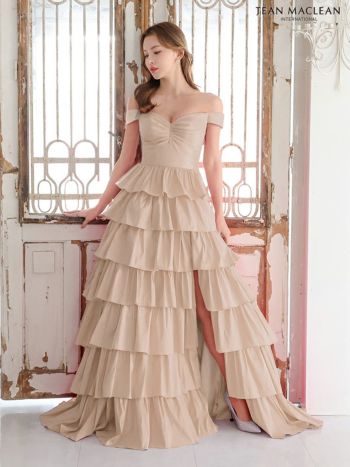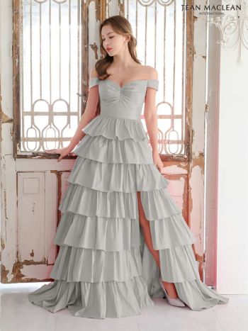 4. 【JEANMACLEAN/ジャンマクレーン】オフショルダー バストハートカット バースデー チュール サイドスリット フレアロングドレス (41636)