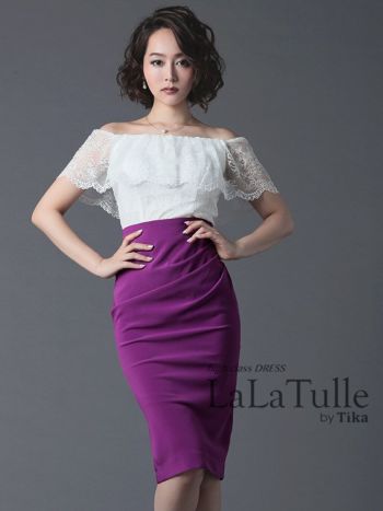 ラグジュアリーな総レースのトップスに色気のあるミモレ丈のスカートのセットアップドレス♪