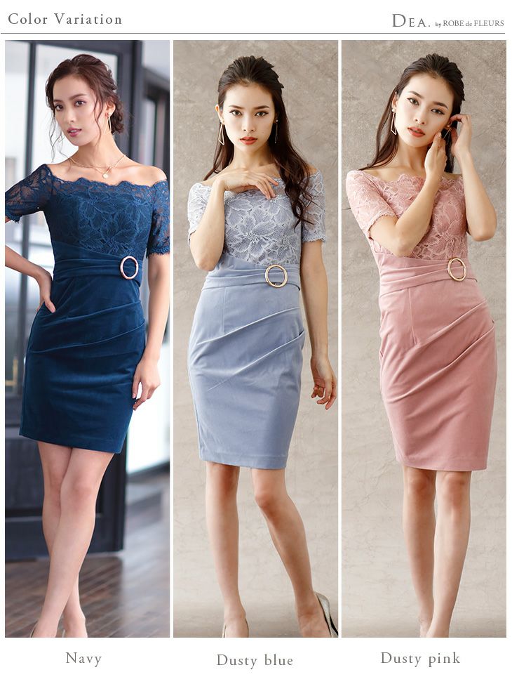 他の画像を見る 大人かわいいフェミニンな高級キャバ ワンピース♪ 【DEA.by ROBE de FLEURS/ディア】レース シンプルベロア オフショルダー タイトひざ丈ドレス[ネイビー][Lあり][1234] ¥ 21,780 税込 在庫切れ 詳細を見る お気に入りに登録する