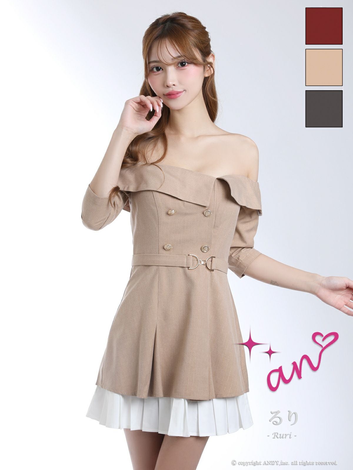 他の画像を見る XSあり!デコルテをすっきり美しく演出♪ 【Angel R/エンジェルアール】肩あき ビジューチェーン ウエストベルト バイカラー プリーツ セットアップ 2way オフショルダー フレアミニドレス (AR26809) ¥ 28,380 税込 詳細を見る お気に入りに登録する