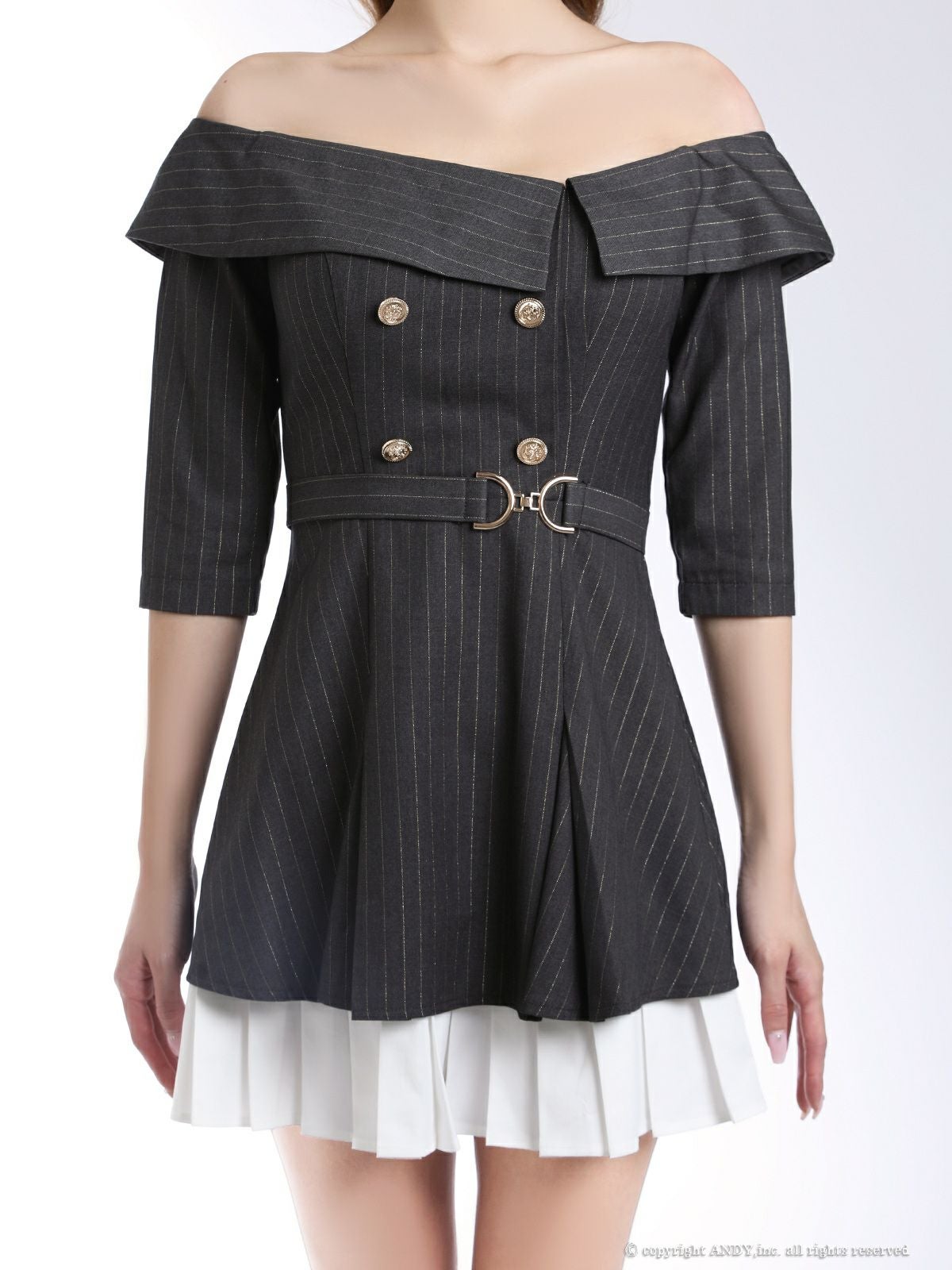 他の画像を見る XSあり!デコルテをスッキリ魅せる♡ 【an/アン】ストライプ 袖あり オフショルダー 飾りボタン プリーツ ベルト フレアミニドレス(aoc4018) ¥ 28,600 税込 詳細を見る お気に入りに登録する