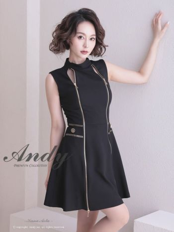 4. 【Andy/アンディ】バイカラー ジップ ノースリーブ フレアワンピース フレアミニドレス (AN-ON2707)