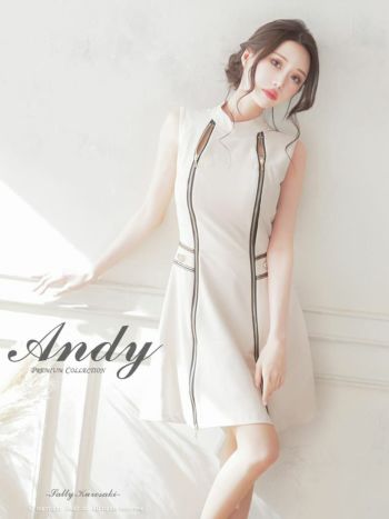 4. 【Andy/アンディ】セクシー ダブルジップ バイカラー ノースリーブ フレアワンピース フレアミニドレス (AN-ON2707)