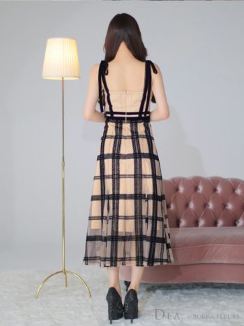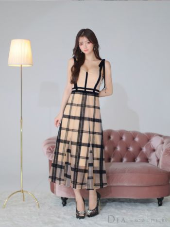 4. 【DEA.by ROBE de FLEURS/ディア】キュート キャミソール チェック チュールフレア リボン Aラインロングドレス(DE3313)