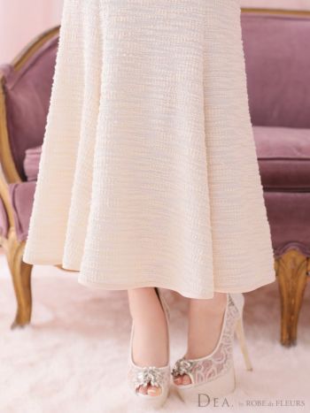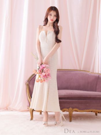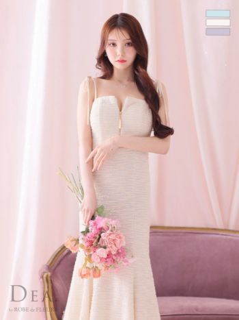 4. 【DEA.by ROBE de FLEURS/ディア】キャミソール 肩紐リボン フロントジッパー ニット ツイード マーメイド フレアロングドレス(DE3328)
