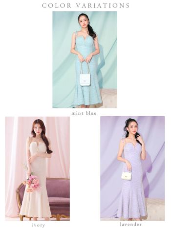 3. 【DEA.by ROBE de FLEURS/ディア】キャミソール 肩紐リボン フロントジッパー ニット ツイード マーメイド フレアロングドレス(DE3328)