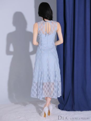 Lあり!涼しげなデザイン★ 【DEA.by ROBE de FLEURS/ディア】シースルー ノースリーブ チェック柄 セクシー Aラインロングドレス (DE3553)
