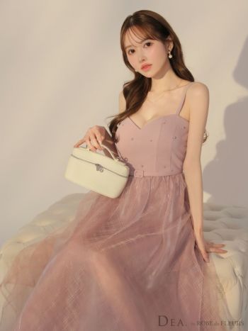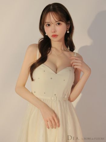 キャバドレス DEA.by ROBE de FLEURS ディア エレガント オープンバスト キャミソール ベルトデザイン ビジュー オーガンジー レース Aラインロングドレス