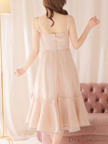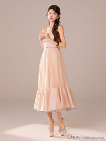 4. 【DEA.by ROBE de FLEURS/ディア】オープンバスト キャミソール シフォン ベルトデザイン エレガント Aラインロングドレス (DE3752)