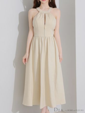 Lあり!スリットでセクシーさをプラス♪ 予約商品【2月下旬入荷予定】【DEA.by ROBE de FLEURS/ディア】ジップデザイン ホルターネック バックリボン スリット フレアロングドレス (DE3935)