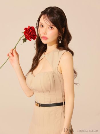 キャバドレス DEA. ROBE de FLEURS ディア ローブドフルール ワンカラー ノースリーブ ウエストベルト バストカット プリーツスカート フレアミニドレス