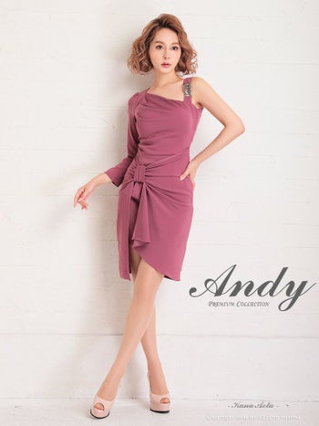 キャバドレス ミニドレス Andy アンディ ワンカラー アシンメトリー チェーンバックル リボン風 袖あり ワンショルダー タイトミニドレス