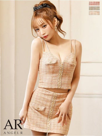 3. SALE【Angel R/エンジェルアール】キャミソール チェック スパンコール ビジュー セットアップ フレアミニドレス (AR23332)