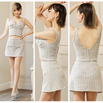 4. SALE【Angel R/エンジェルアール】キャミソール チェック スパンコール ビジュー セットアップ フレアミニドレス (AR23332)