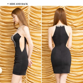 3. 【Angel R/エンジェルアール】ホルターネック デコルテビジュー ショルダーパールチェーン メッシュ くびれ透け セクシー オープンバスト タイトミニドレス (AR24238)