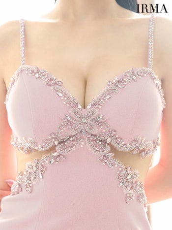 キャバドレス IRMA イルマ セクシー オープンバスト キャミソール くびれ透け ビジュー ラメニット タイトミニドレス