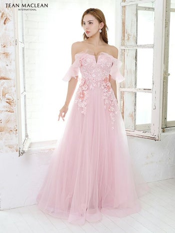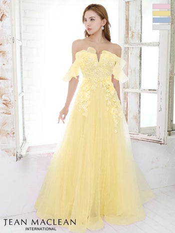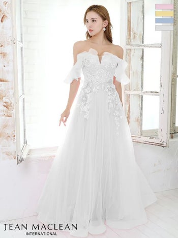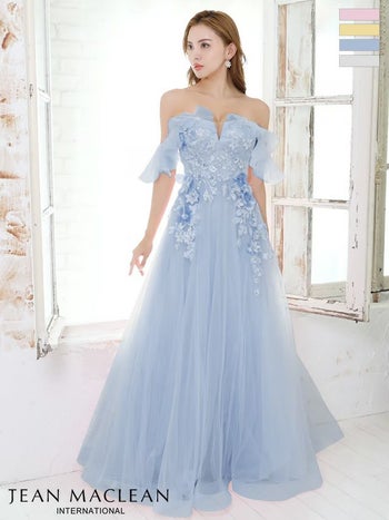 Lあり!プリンセスのように華やかでゴージャスに☆ 【JEANMACLEAN/ジャンマクレーン】オフショルダー ワンカラー フラワー刺繍 2way Aライン フレアロングドレス (31517)