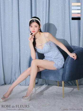 キャバドレス ROBEdeFLEURS スパンコール リボン キャミソール オープンバスト ガーリー ビジュー タイトミニドレス