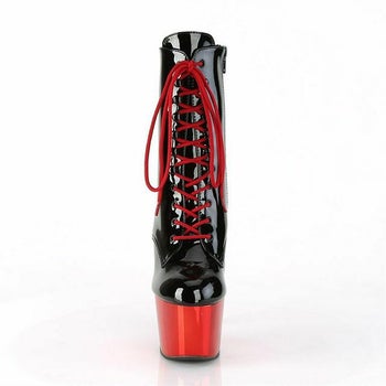 [ハロウィン コスプレ小物][PLEASER][プリーザー][インポート]レースアップエナメルショートブーツ (ブラック×レッド) (15cmヒール)[送料無料]画像1