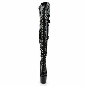 3. 【PLEASER/プリーザー】ベルト 編み上げ エナメル 厚底 ハイヒール ロング サイハイ ニーハイ ブーツ[ブラック][22.8cm~25.4cm][15cmヒール]