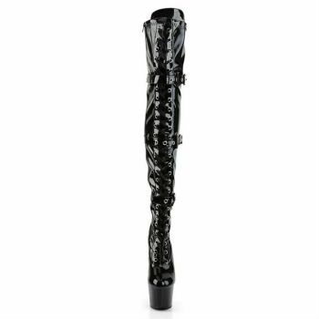 15cmヒール☆海外ブランドのセクシーで美脚に見せる厚底ニーハイブーツ♪ 【PLEASER/プリーザー】ベルト 編み上げ エナメル 厚底 ハイヒール ロング サイハイ ニーハイ ブーツ[ブラック][22.8cm~25.4cm][15cmヒール]