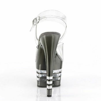 5. 【PLEASER/プリーザー】キャバヒール アンクル ストラップ ブラック ライン 厚底 ハイヒール クリア サンダル [クリア×ブラック][22.8cm~25.4cm][17cmヒール]