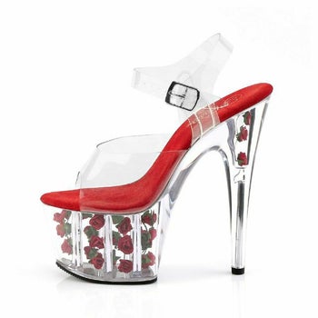 5. 【PLEASER/プリーザー】キャバヒール アンクル ストラップ 3段薔薇 厚底 ハイヒール クリア サンダル [クリア×レッド][22.8cm~25.4cm][17cmヒール]