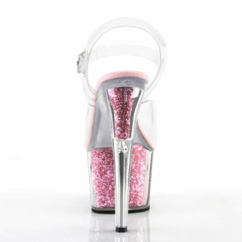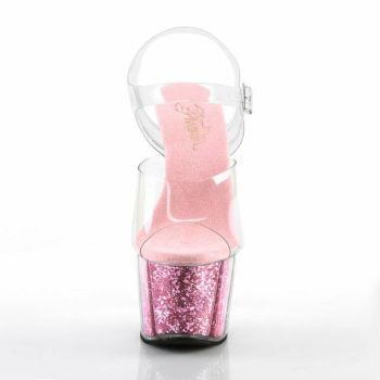 【PLEASER/プリーザー】キャバヒール アンクル ストラップ ピンク ラメ ソール 厚底 ハイヒール クリア サンダル[クリア×ベビーピンク グリッター][22.8cm~25.4cm][17cmヒール]