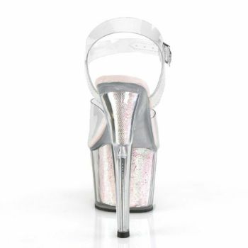 【PLEASER/プリーザー】キャバヒール アンクル ストラップ オパール加工 ソール 厚底 ハイヒール クリア サンダル[クリア×オパール グリッター][22.8cm~25.4cm][17cmヒール]