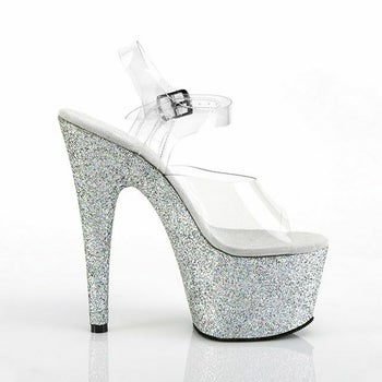 5. 【PLEASER/プリーザー】キャバヒール アンクル ストラップ シルバー ラメ 厚底 ハイヒール クリア サンダル[クリア×シルバー][22.8cm~25.4cm][17cmヒール]