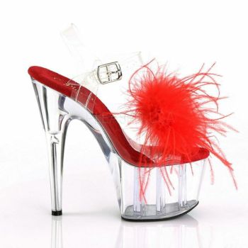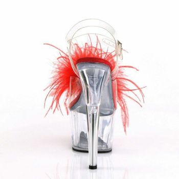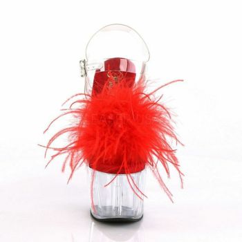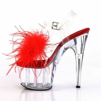 3. 【PLEASER/プリーザー】アンクル ストラップ ファー モチーフ 厚底 ハイヒール クリア サンダル[クリア×レッド][22.8cm~25.4cm][17cmヒール]