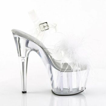 5. 【PLEASER/プリーザー】キャバヒール アンクル ストラップ ファー モチーフ 厚底 ハイヒール クリアサンダル[クリア×ホワイト][22.8cm~25.4cm][17cmヒール]