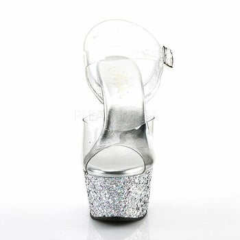 16.5cmヒール☆海外ブランドのキャバドレスにピッタリなストラップ付き厚底クリアサンダル♪ 【PLEASER/プリーザー】キャバヒール アンクル ストラップ シルバー グリッター 厚底 ハイヒール クリア サンダル [クリア×シルバー][22.5cm~25.4cm][16.5cmヒール]
