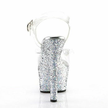 4. 【PLEASER/プリーザー】キャバヒール アンクル ストラップ シルバー グリッター 厚底 ハイヒール クリア サンダル [クリア×シルバー][22.5cm~25.4cm][16.5cmヒール]