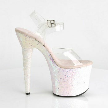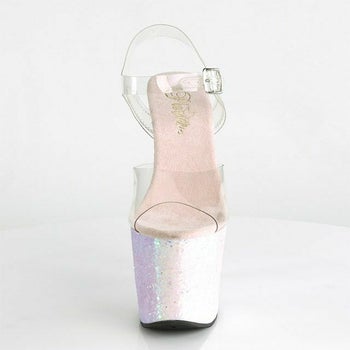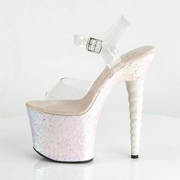 4. 【PLEASER/プリーザー】キャバヒール アンクル ストラップ ラメ 厚底 ハイヒール クリアサンダル [クリア×オパール][22.8cm~25.4cm][18cmヒール]