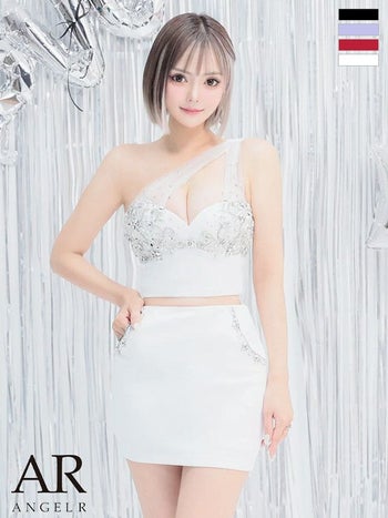 XSあり!バストビジューが高級感をプラス☆ 【Angel R/エンジェルアール】セクシー オープンバスト ワンショルダー バストビジュー ポケット セットアップ タイトミニドレス (AR24848)