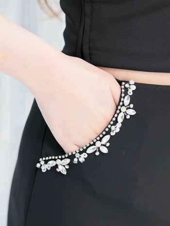 4. 【Angel R/エンジェルアール】セクシー オープンバスト ワンショルダー バストビジュー ポケット セットアップ タイトミニドレス (AR24848)