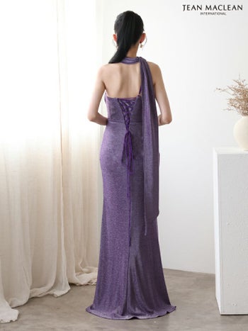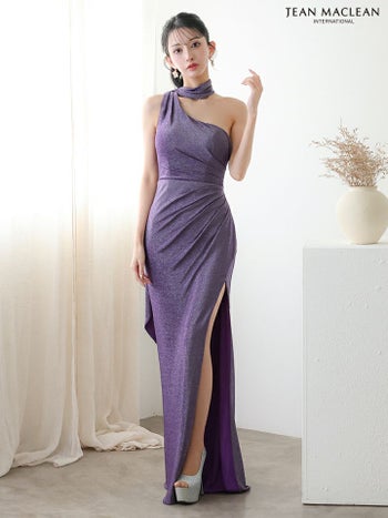 4. 【JEANMACLEAN/ジャンマクレーン】ラメ スリット ワンカラー ストール ワンショルダー タイトロングドレス(51928)